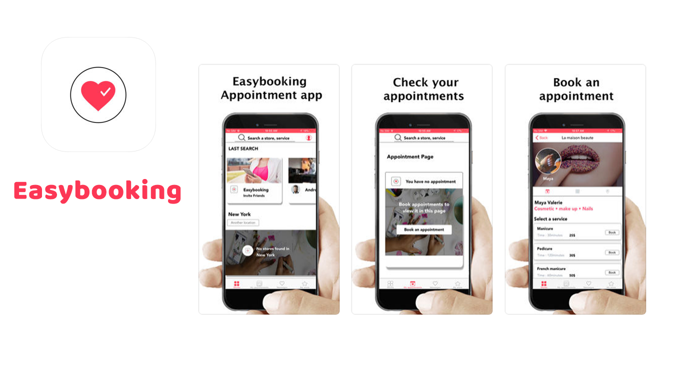 Easybooking is an appointment app. It let you book an appointment anytime, get notified, to not forget your appointment anymore, to create a store and increase your customer base.