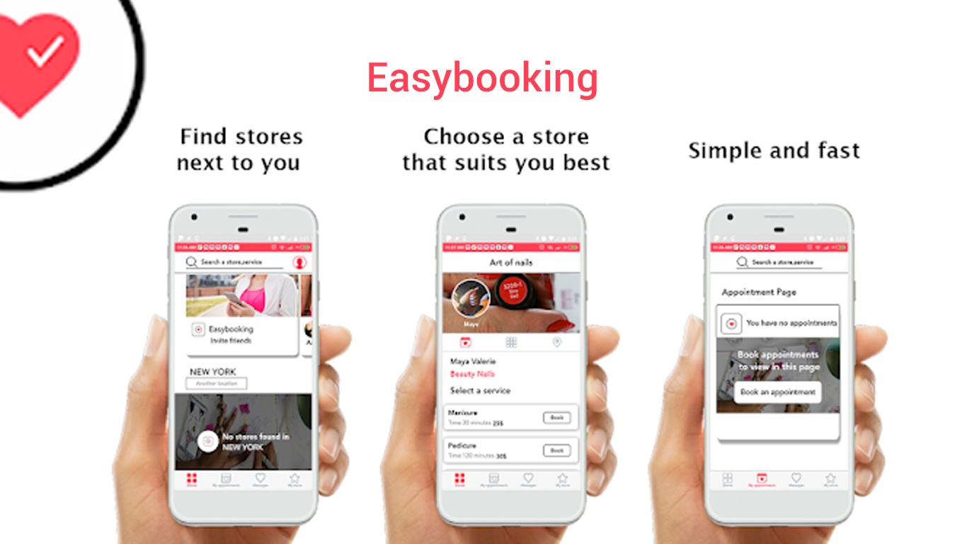 Easybooking is an appointment app. It let you book an appointment anytime, get notified, to not forget your appointment anymore, to create a store and increase your customer base.