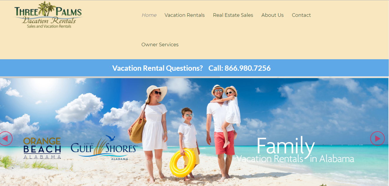 Three Palms Vacation Rentals offer you advice, recommendations, and expertise that only a gulf coast local can give you about the condos, homes, & luxury accommodations for rent in Orange Beach, Gulf Shores, and Fort Morgan. Customers are assured that they will receive the personal attention that a larger rental company cant provide.