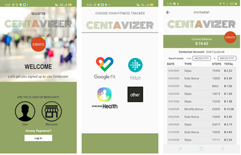 CENTAVIZER is the App that offers incentives to users for walking and healthy activities by exchanging your steps for retail, online, tangible and monetary rewards and discounts. CENTAVIZER is designed to easily integrate with existing smart phones or wearable step tracking technology, such as Apple Health, Fitbit, Google Fit, and Samsung Health.