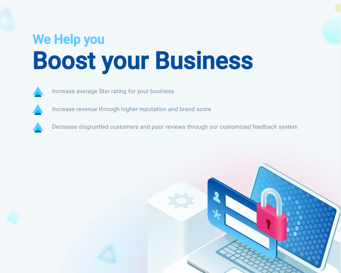 An innovative application developed so that any business entity can keep track of the reviews their services receive. The owner will be the Super admin and his employees can request the customers to give reviews via an email. If positive reviews are received, then it can be published and propagated through all social media platforms thus giving maximum exposure and fillip for the business. If negative reviews are received, then remedial measures can be taken to win over a dissatisfied client.